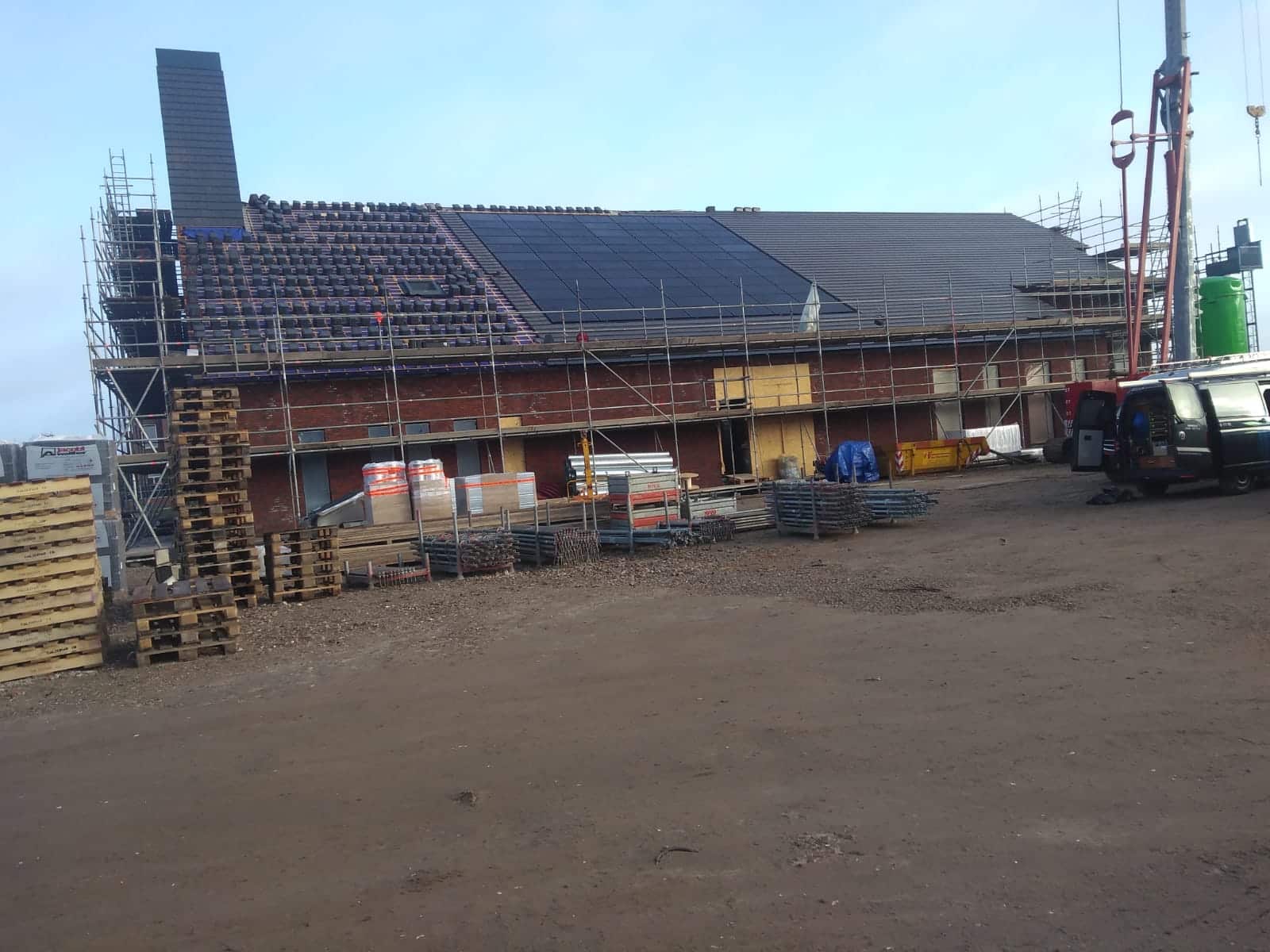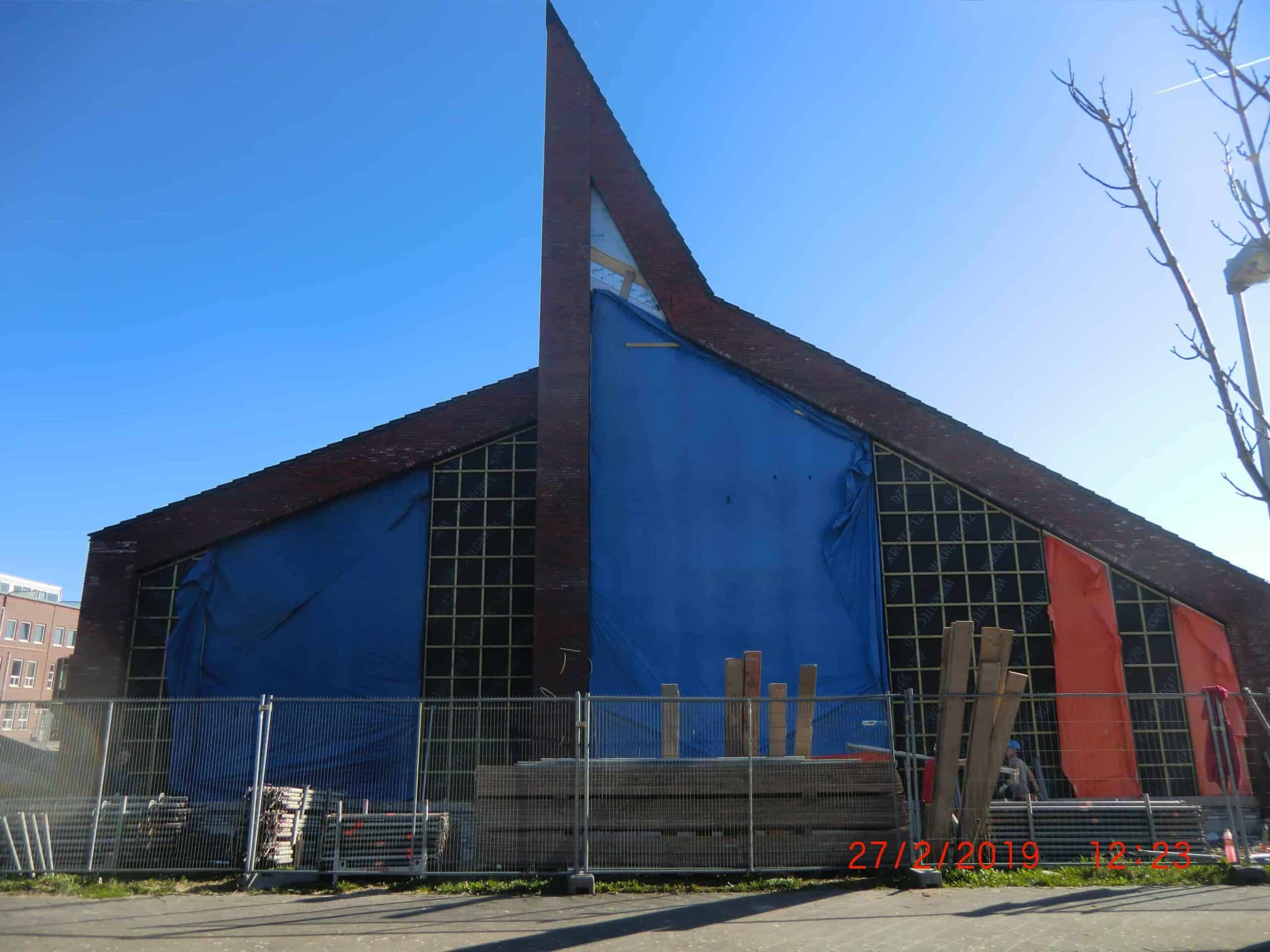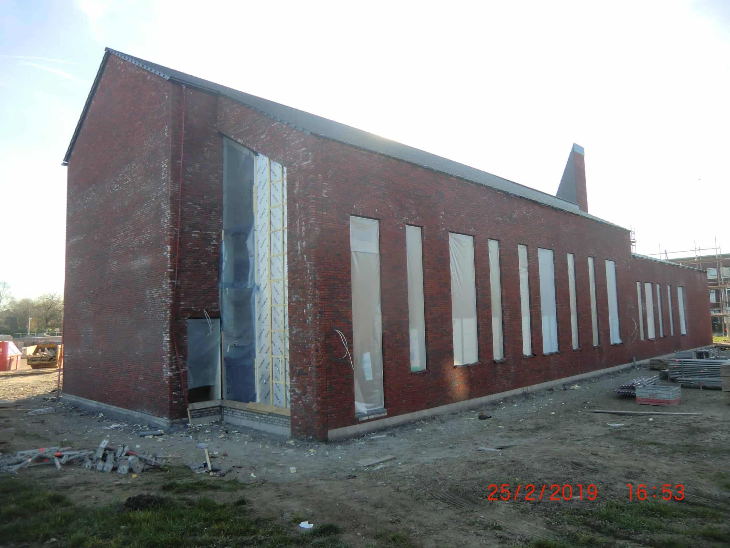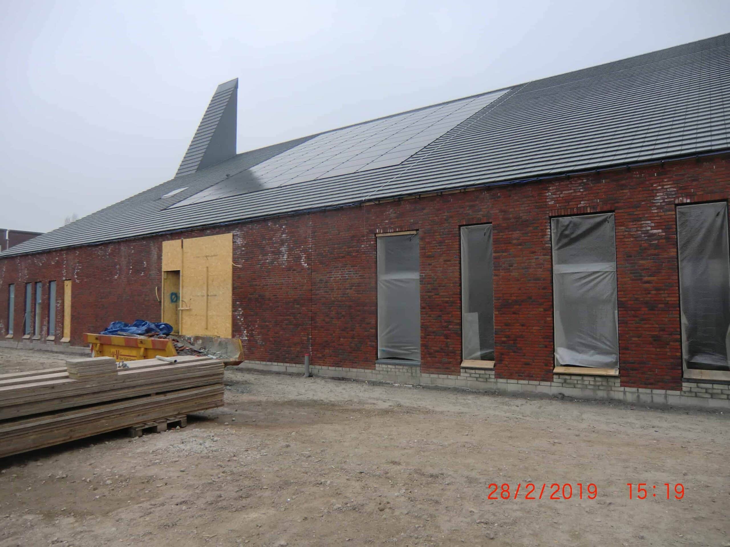 De laatste pannen zijn op het dak gelegd en de steigers verwijderd. Van buiten lijkt het al bijna klaar, maar binnen moet nog het nodige gebeuren.